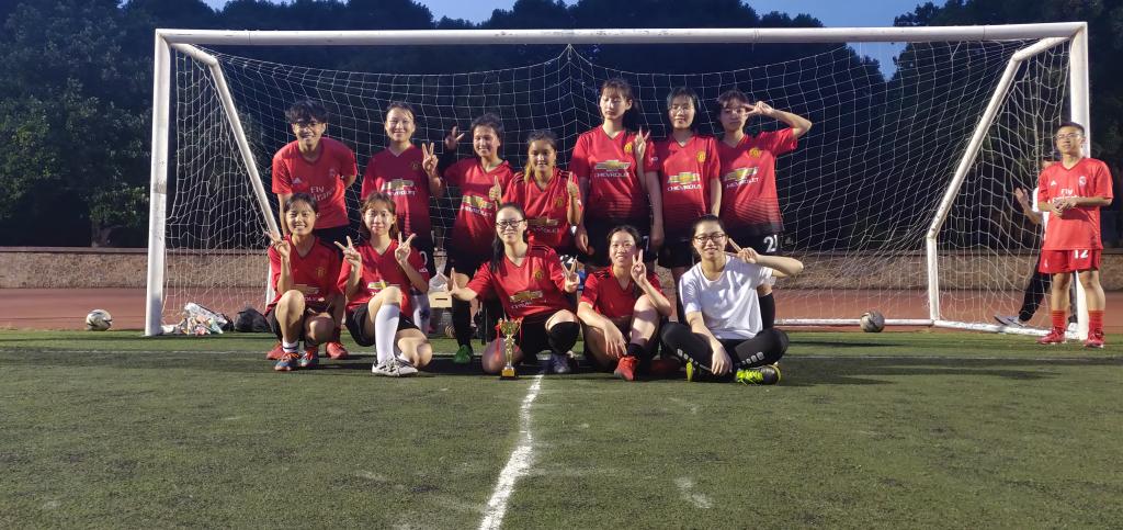 颁奖仪式上,kaiyun开云官网女子足球队队员们捧着奖杯合影留恋。