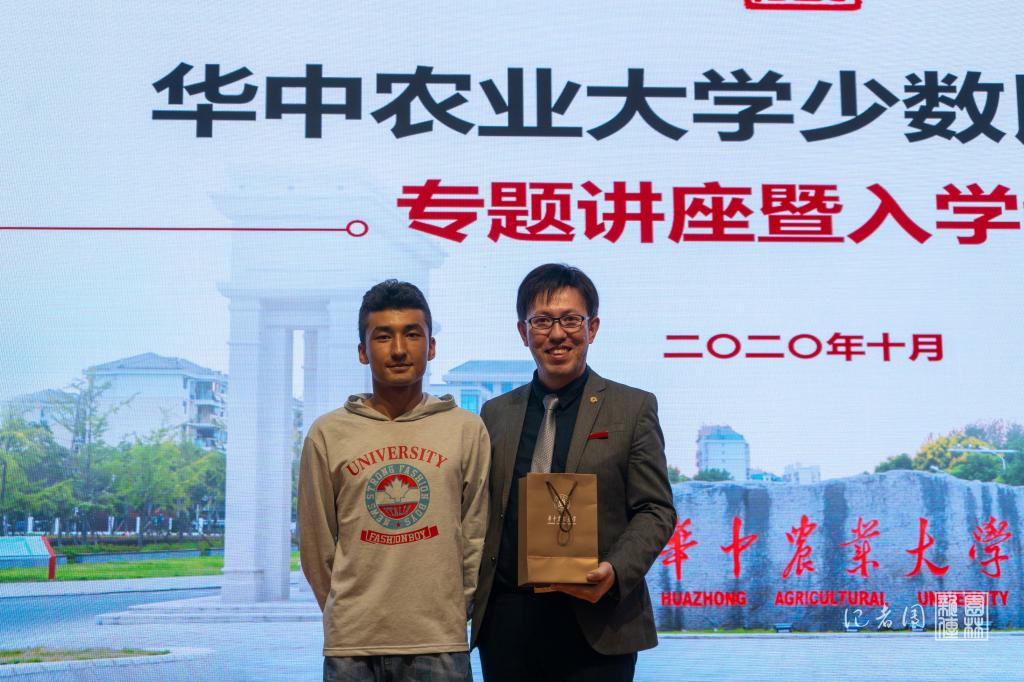 讲座的最后,尼加提老师鼓励同学们把人生当做事业,享受青春、坚持学习。“我们不缺商人,我们缺思想家。脚踏实地,仰望星空,我们要用先进的思想武装自己,来建设国家、建设新疆!”讲座在热烈的掌声中结束了,植物科学技术学院植物生产类2020班的亚力坤同学代表全体到会同学向尼加提老师表达了感谢之情。