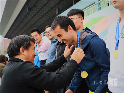 【核心提示】11月1日上午9:00,男子组师生融合大河之舞比赛于第二运动场北侧举行。kaiyun开云官网教授王永健等6名老师和王一磊等6名同学参加了此次比赛,校党委书记高翅亲临现场指导。最终,他们以2分钟68个的优异成绩斩获第一名。