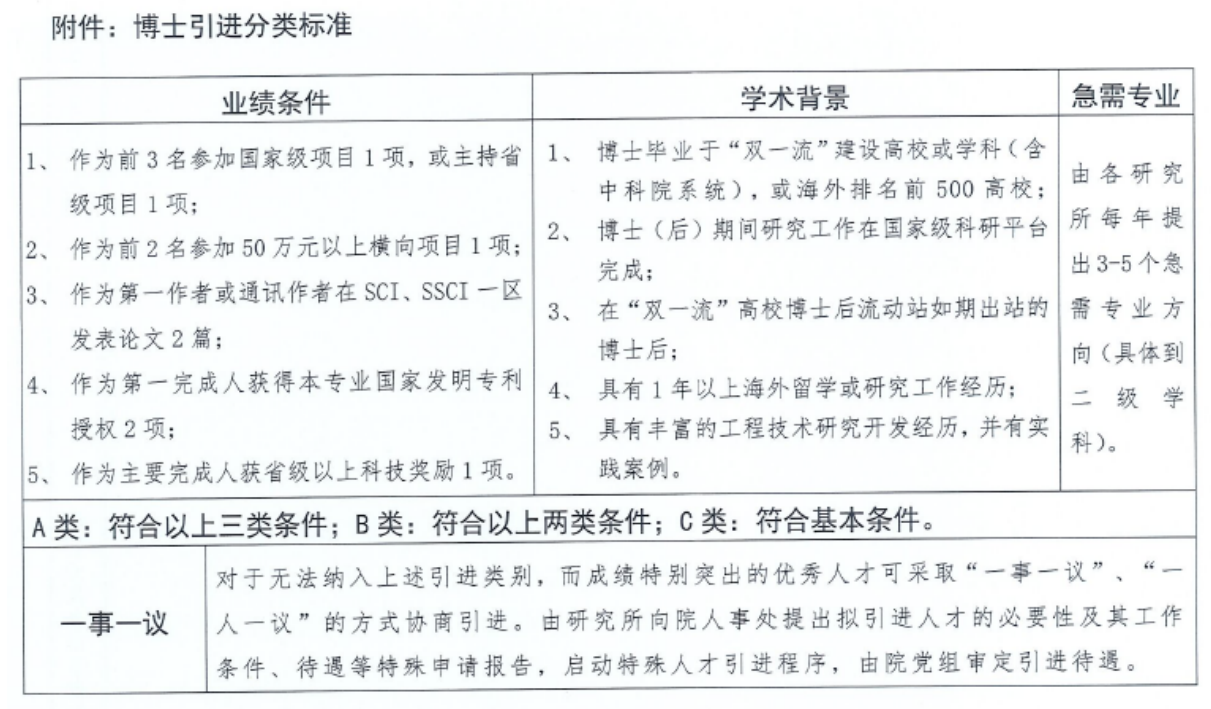 1、根据江西省科学院相关人才政策,引进人才分为 A、B、C 三类。