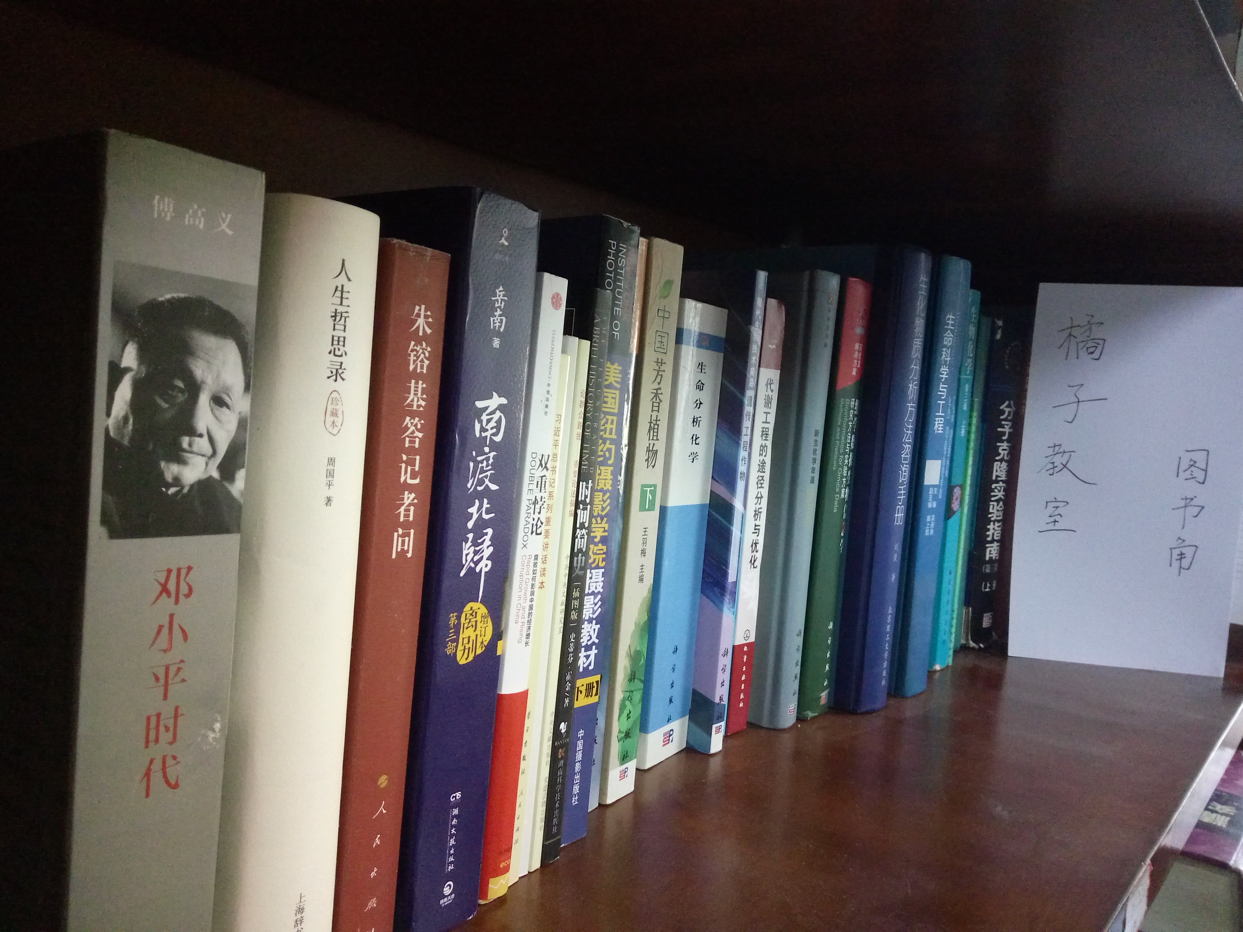 橘子教室图书角坐落在分子楼324室,经过广泛的图书意见征集,三个党支部最终选购包括《邓小平时代》、《朱镕基答记者问》等经典读本以及部分实用专业书籍,图书角建成至今已有两个月的时间,图书角内图书被各位党员以及入党积极分子积极借阅,目前图书角已经成了大家实验之余的休闲学习之地。果树第七党支部党员瞿韵同志说:“现在实验间歇时间总喜欢到图书角转一转,翻阅一下喜欢的书籍,不仅可以感受祖国的发展变化,而且可以放松心情地扩展知识,这着实给忙碌的实验生活添了一份色彩。”