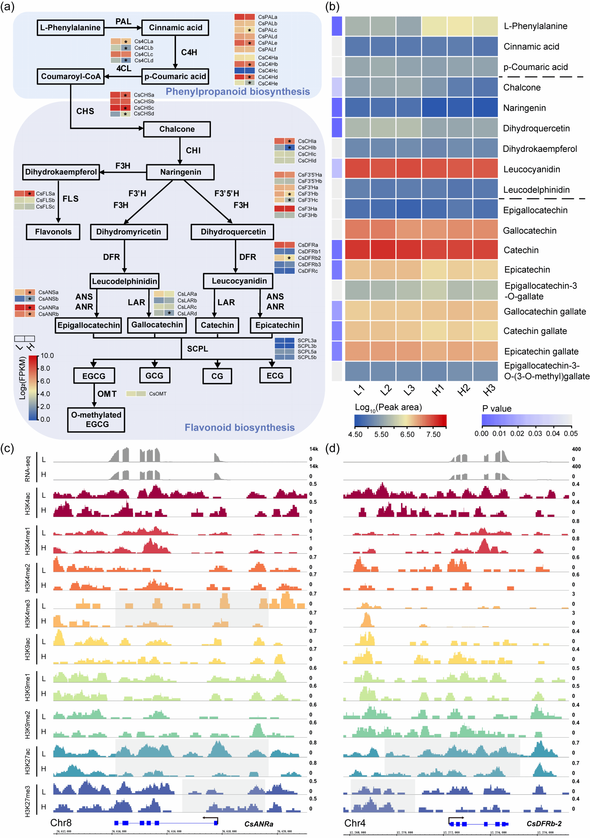 茶树(Camellia sinensis)作为一种重要的经济作物,其特有的次级代谢产物(如儿茶素、咖啡碱和茶氨酸)对人类健康具有诸多益处。谚语“高山云雾出好茶”,表明环境因素对茶树次级代谢的重要影响。尽管已有研究表明光照强度显著调控茶树次级代谢产物的稳态,但其背后的表观遗传机制尚不明确。