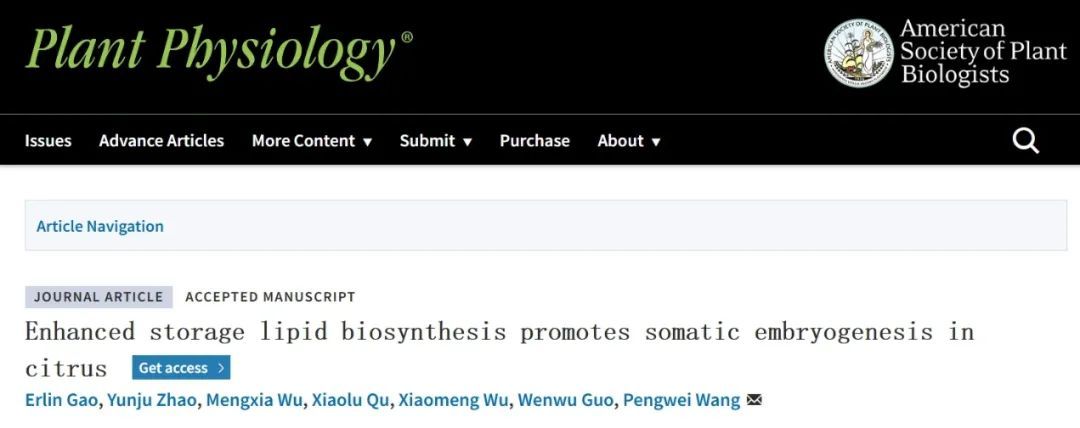 近日,kaiyun开云官方网站、果蔬园艺作物种质创新与利用全国重点实验室王鹏蔚教授团队在Plant Physiology期刊发表题为“Enhanced storage lipid biosynthesis promotes somatic embryogenesis in citrus”的研究论文,揭示了增强柑橘胚性愈伤脂质合成可以促进体细胞胚发生的分子机制。
