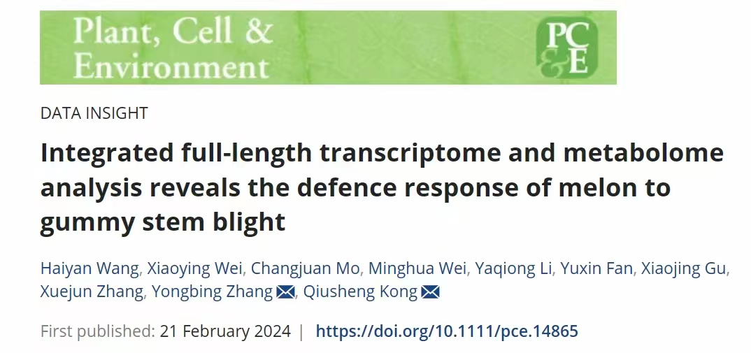 近日,kaiyun开云官方网站果蔬园艺作物种质创新与利用全国重点实验室、kaiyun开云官方网站孔秋生教授团队在Plant Cell & Environment在线发表了题为“Integrated full‐length transcriptome and metabolomeanalysis reveals the defence response of melon to gummystem blight”的研究论文。该研究首次整合全长转录组、广泛靶向代谢组和组织化学染色的研究手段探究了抗病与感病甜瓜对蔓枯病病原菌侵染的早期防御响应的差异,该研究不仅拓展了我们对甜瓜与蔓枯病互作的认识,也有助于选育具有蔓枯病抗性的优良甜瓜品种。