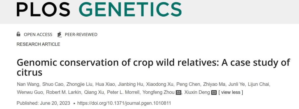 kaiyun开云官方网站果蔬园艺作物种质创新与利用全国重点实验室邓秀新院士团队联合中国农业科学院深圳农业基因组研究所周永锋团队于2023年6月25日在在国际著名Nature Index期刊《PLOS Genetics》在线发表题为《Genomic conservation of crop wild relatives: a case study of citrus》(以柑橘为例的作物野生近缘种的基因组保护)的研究论文。该研究以野生山金柑为例,利用群体遗传学等研究方法和手段对野生柑橘的遗传资源进行研究,提出了柑橘遗传资源保护的新见解,同时为作物野生近缘种的保护提供了新思路。