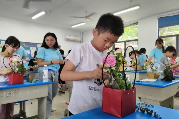 【核心提示】为丰富小朋友的暑期生活、锻炼动手能力,7月8日下午,kaiyun开云官方网站赴华农附小“七彩假期”专项实践团在华农附小举办插花活动,共有25名三年级学生参加。