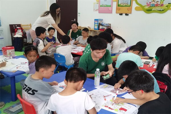 7月10日,在陈玲书记的带领下,实践团队参与了当地政府部门组织举办的“希望家园”暑期儿童服务开班仪式,并开展了艺术绘画志愿活动。活动前几天,成员们便准备好了关于襄阳古建筑的画作及绘画工具。考虑到孩子们的喜好,成员又增加了一些关于小动物等适宜儿童的主题画作。
