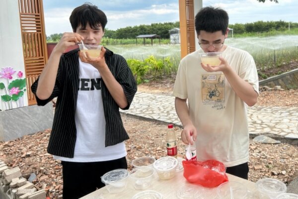 烈日炎炎,实践团成员不畏酷暑、不惧日晒,在劳动中自得其乐,成员间欢声笑语不断。在成员们结束劳动后,热情的基地负责人们为他们准备了春之染基地独特的百合银耳羹。百合银耳羹的甘甜爽口中带着一丝微苦,成员们的疲惫一扫而空,同时他们还感受到了劳动的价值,并且对春之染花卉基地负责人以及工作人员对这份事业热爱和坚持的意义有了更深刻的认识。基地负责人在同学们赞不绝口的声音中喜笑颜开,大家在欢笑中走出了基地。