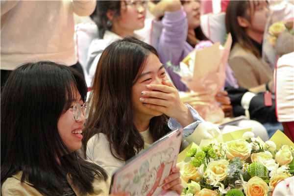 在述职汇报结束后,阿卜力克木·吾卜力和邬远生分别为2021级学生班主任助理、下班党员颁发聘书。2021级的部分同学也来到现场,为学班和下班送上鲜花。最后,邬远生还播放了他和2021级同学共同合作的感谢视频,来表达他们对学班和下班的喜爱和感激。设施2101班学班李铭璇说:“看到视频的那一瞬间,我的眼泪就要绷不住了。我和我们班的小朋友一直都是双向奔赴的爱。”