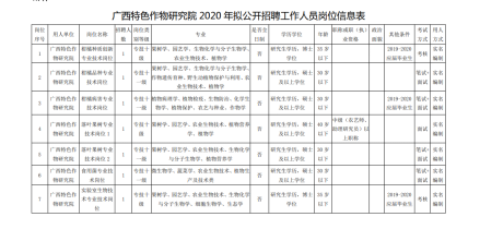 附件:1.广西特色作物研究院 2020 年拟公开招聘工作 人员岗位信息表