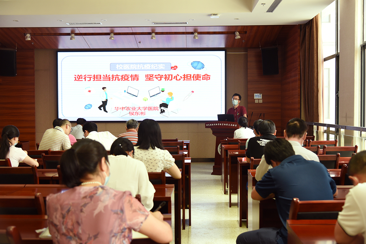 7月1日下午,为庆祝中国共产党成立99周年,果树系教工党支部在园林院南楼204报告厅举行主题党日活动,特邀校医院侯东彬副院长为支部党员讲述校医院抗疫故事和抗疫榜样雷磊医生的先进事迹。活动由果树系教工党支部书记徐强教授主持,学院党委书记张宏荣、行政党支部、茶学党支部、实验室党支部、园林党支部等同志也参加学习。