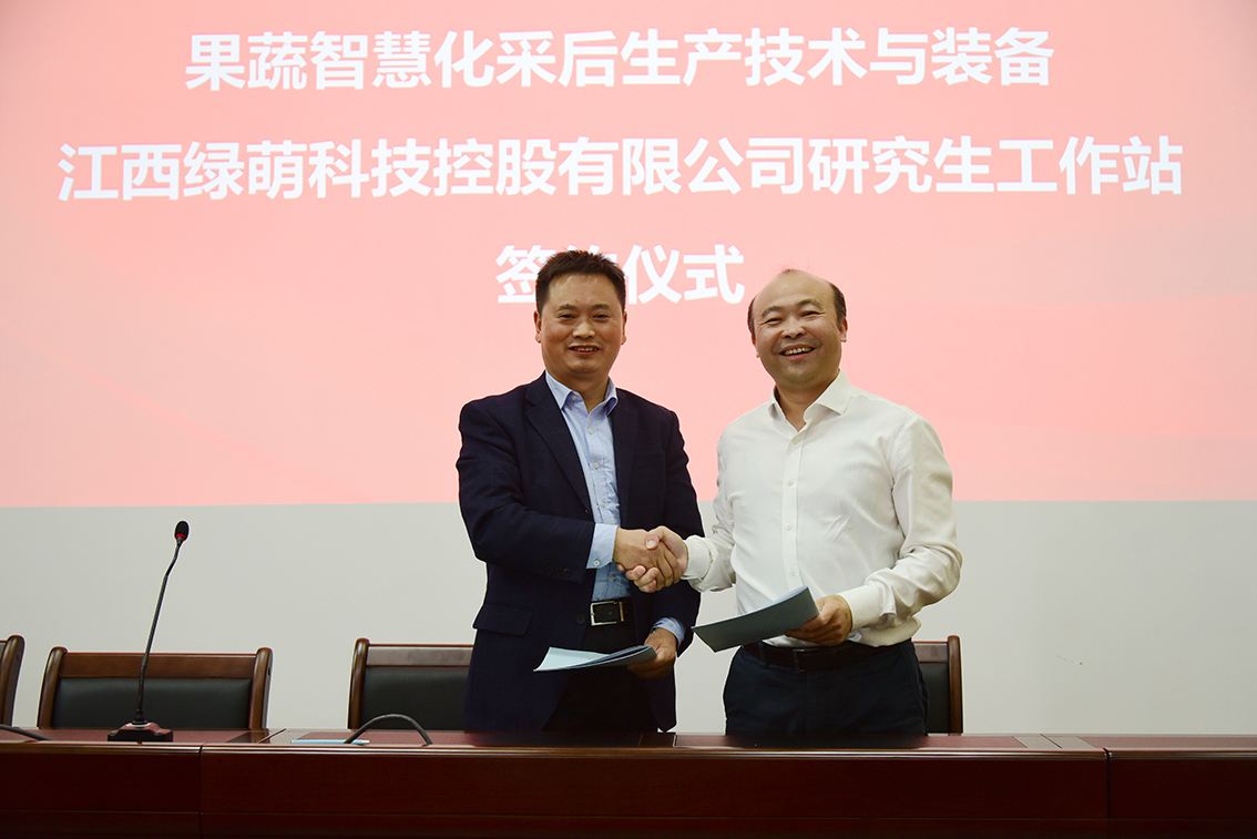 随后,程运江院长与朱壹董事长现场签订共建湖北省研究生工作站合作协议。与会人员还参观调研江西绿萌科技控股有限公司、柑橘种植国家现代农业科技示范展示基地,应邀参加2021年赣南脐橙博览会。