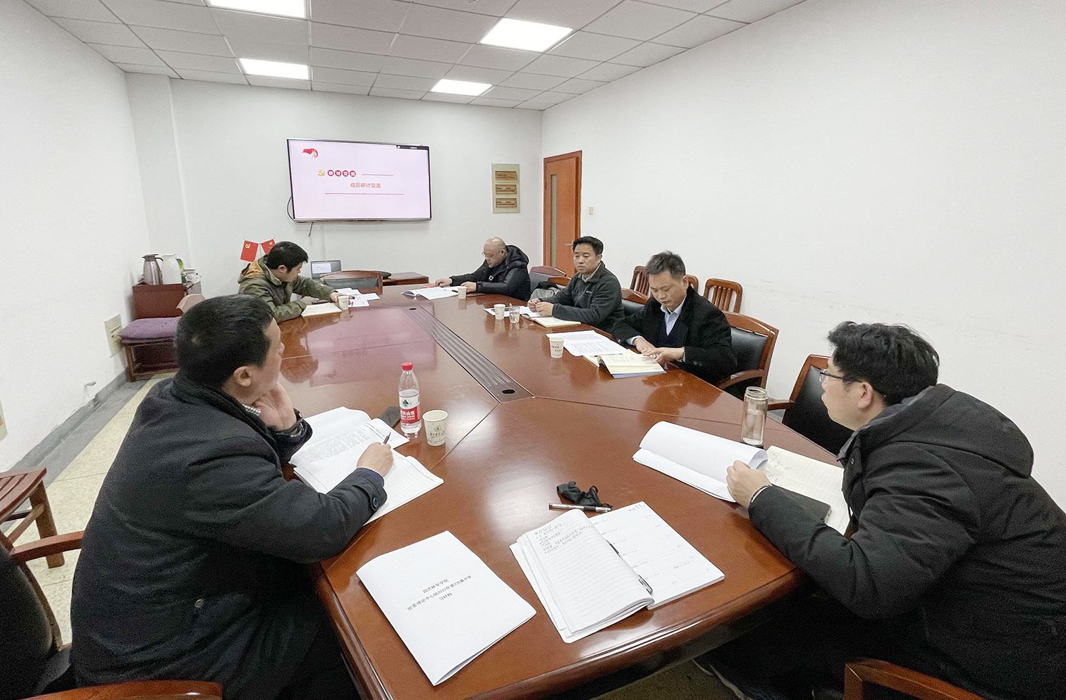 学院领导班子成员张宏荣、程运江、蔡江、张斌、周继荣参加集体学习。