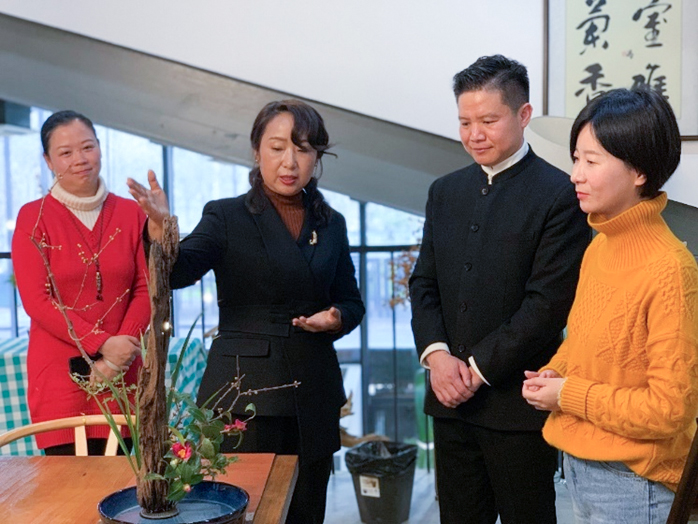 小寒篇“姹紫嫣红花园里”活动现场设在汉阳五境花园董事长孙艳霞董事长的五境花园。kaiyun开云官方网站张蔚副教授作为嘉宾主持,带领花友们一边游览空间室外花境冬季景色。孙艳霞向花友们介绍了五境花园的创立初心——综合性的沉浸体验。宾客可以进行多彩多姿的体验活动如插花、花艺、绿植组合设计以及美食、读书会和抚琴等。活动结尾,五境花园特邀梁朋花艺师应小寒节气现场创作中国传统插花,利用枯荣相生的自然理念,以枯木、蜡梅枝、茶花等表现小寒的“三侯”意象,也表达对于自然与生活深层次意境的追求。