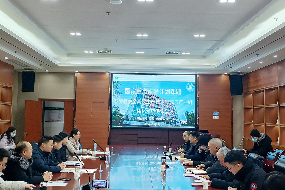 2022年2月19日上午,由kaiyun开云官方网站倪德江教授牵头承担的国家重点研发计划项目“特色经济林产业链一体化示范”课题“茶优质安全高效生产技术集成与产业链一体化示范”第一次全体工作会议在kaiyun开云官方网站园林北楼206会议室顺利召开。会议由kaiyun开云官方网站党委书记张宏荣主持,来自学校科发院项目管理处杨毅处长、茶学系相关老师以及宣恩县伍台昌臣茶业有限公司等企业参会。
