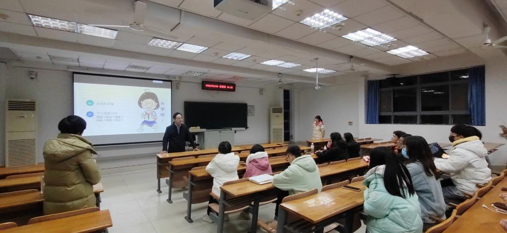 副校长杨少波在本科生班会现场亲切地叮嘱同学们到校后及时和家长报一声平安,避免让家人担忧,同时提醒大家不要放松警惕,带好口罩,做好疫情防控措施;学院党委书记张宏荣向同学们了解了上学期的班级成绩情况与当下大家的学习状况,勉励同学们抓住青春,努力学习;学院院长程运江寄语同学们要关注专业学习,做好有关自身的长远规划,鼓励大家在不违法违纪的前提下个性化发展;学院党委副书记蔡江和同学们重点强调了学风班风的重要性,同时谨防电信诈骗;学院副院长周继荣希望大家在新的一年里有新的气象,保持自信,独立思考,勇于表达,与班级同学一起携手共创美好明天。