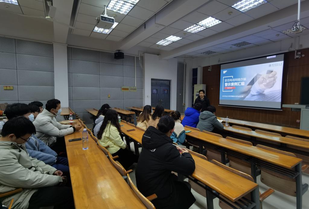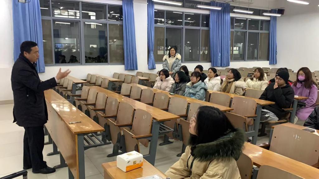 学院党委副书记蔡江和同学们重点强调谨防电信诈骗(克木 摄)