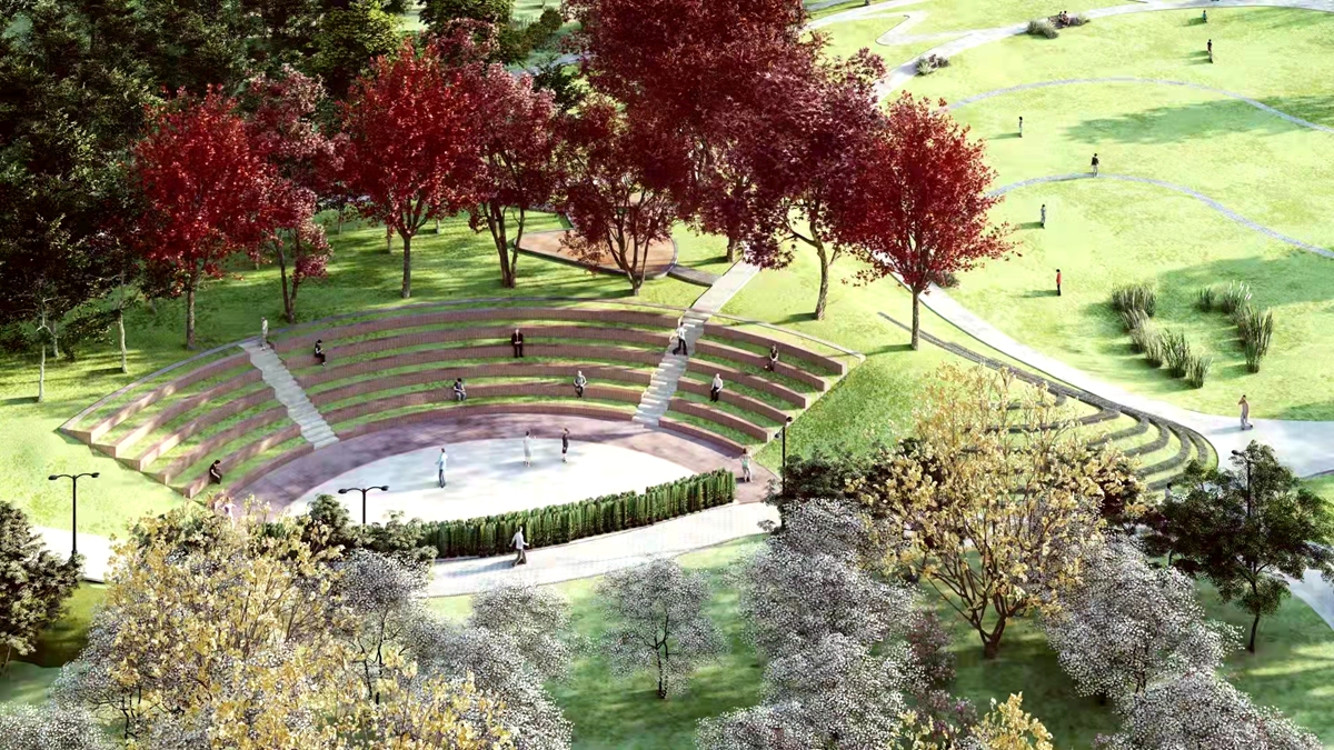 “山水林田湖草,皆是佳景。”在“草坪音乐广场”的设计中,设计团队顺应地形,勾勒出多条流畅、简约的弧线作为道路,除铺装和必要的坐凳,尽可能保留原有的自然之景。“不需要大费周章的设计,不需要过多元素的加入,将大地的景色用自然的方式去表达,既节约成本,又保证了设计的动感”,张斌说道。在日常利用方面,这里将被打造成一个集交流、互动 、活跃、学习于一体的绿色空间,同时多方面满足了舒适、宜人、自然等环境需要。