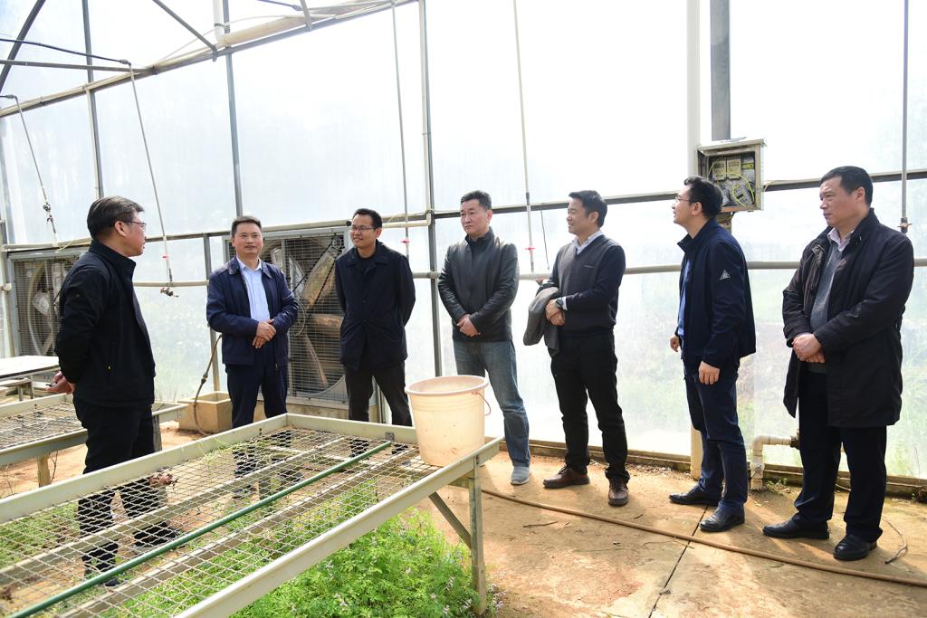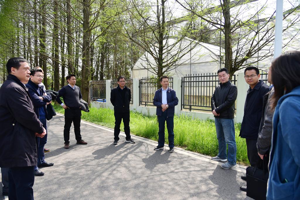 3月28日上午,学院党委书记张宏荣、院长程运江与工学院党委书记明庭庆、院长廖庆喜在果树标本园现场研讨推进国家数字种植业(果园)创新分中心建设。