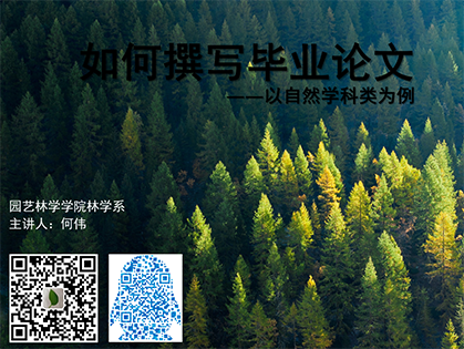 上午十点,何伟副教授在三教C103教室,带领2018级林学、茶学、园林专业学生在线上线下同步开展主题为“如何撰写毕业论文——以自然科学类为例”的专题培训。课堂上,何伟向同学们介绍了本科毕业论文的相关管理办法及基本规范要求,深入浅出地介绍了本科毕业论文的结构及相关写作要点,鼓励同学们从专业期刊论文中汲取经验,提高写作水平。