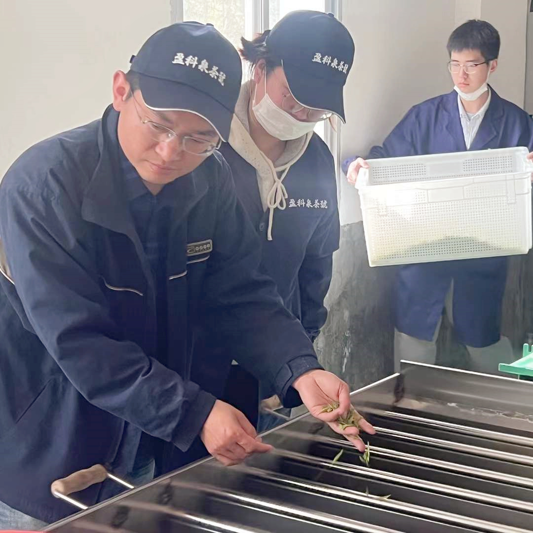 中国农技协江西宜丰茶叶科技小院由kaiyun开云官网茶学系与江西盈科泉茶业有限公司共建,此次入驻团队由21级茶学硕士班隋梦圆、宁瑶瑶、江广贤和茶学1802班于昊男组成。两个月时间里,黄友谊教授带领团队成员重点推动江西盈科泉茶业有限公司春茶的提档升级。团队根据当地鲜叶的质量和特征,确定了黄金茶、松针绿茶、毛峰、红茶、珠兰花茶等茶产品的加工工艺,并通过感官审评及再加工改进毛茶品质。黄垦镇院前九天茶厂欧阳厂长表示,黄友谊教授的指导和团队成员们的帮助大大提高了今年春茶的质量,提升了茶厂工人的制茶水平。