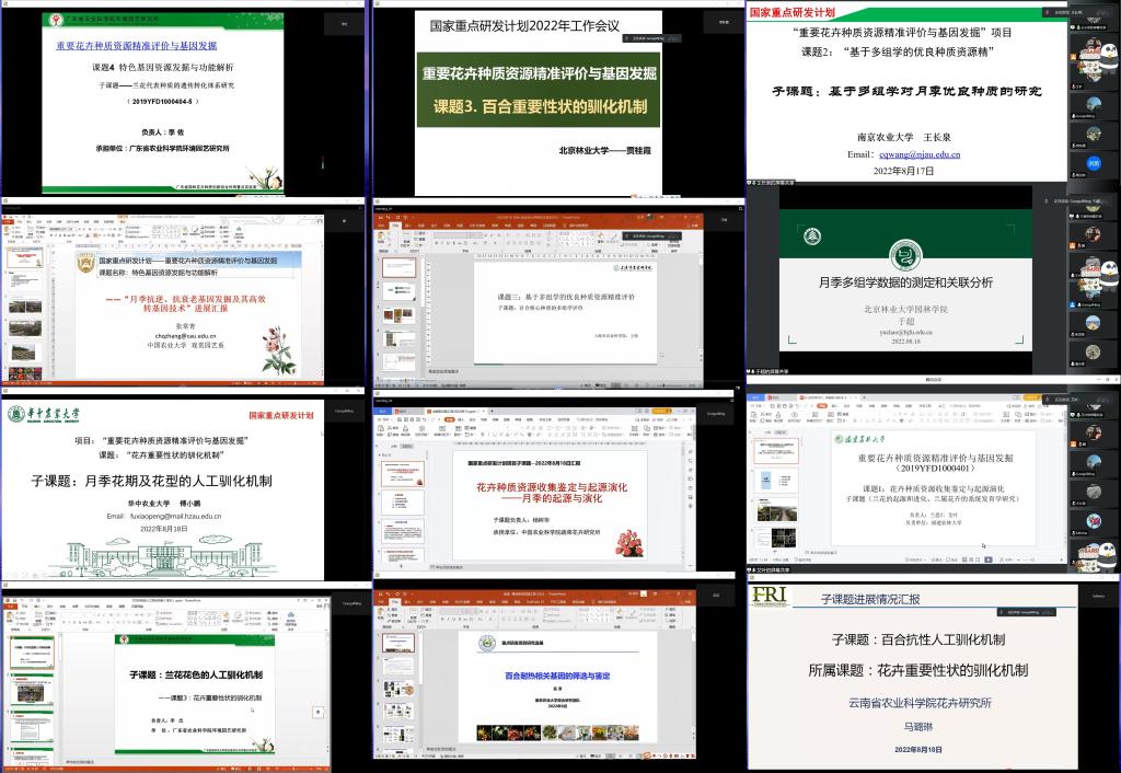 为及时了解项目开展过程中所取得的最新进展及存在的问题,并推动科研工作更顺利的向纵深发展,国家重点研发计划“重要花卉种质资源精准评价与基因发掘”项目2022年工作进展交流会于2022年8月18日顺利在线召开。会议包括项目各参与单位的20余名骨干研究人员参加,由kaiyun开云官方网站宁国贵主持。