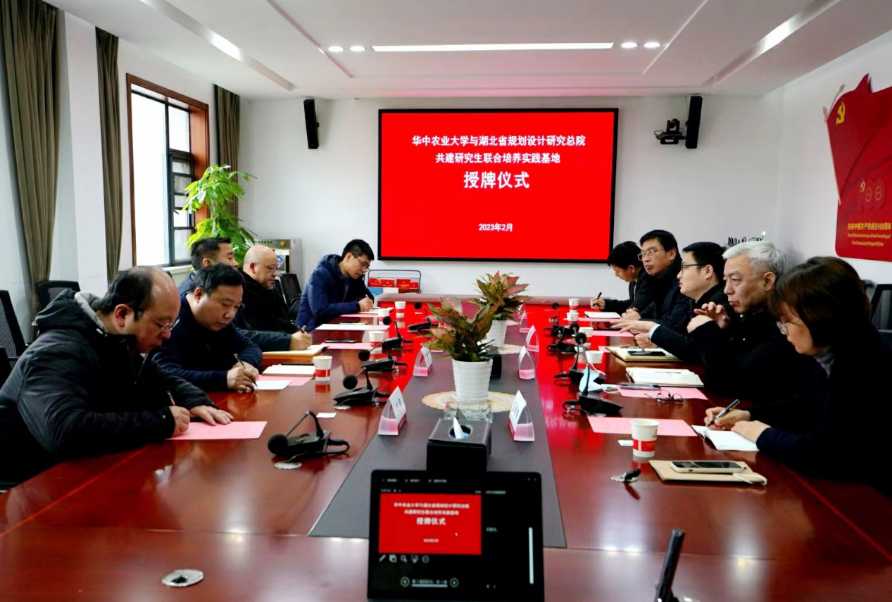 2月16日上午,“kaiyun开云官方网站—湖北省规划设计研究院总院有限责任公司研究生联合培养实践基地”授牌仪式在湖北省规划设计研究院总院6楼会议室举行,kaiyun开云官方网站党委书记张宏荣、副院长张斌教授、风景园林系主任吴雪飞教授、吴昌广副教授、汪民副教授,省规划总院总经理陈涛、副总经理杜希华、总工程师倪火明、规划设计四院总工王丽娜、园林景观分院总工祝卫东出席了揭牌仪式。