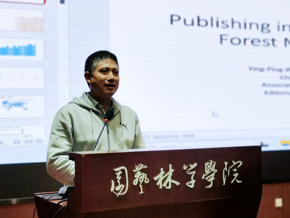 在下午的“林苑讲坛”报告中,王应平博士先后做了题为《PublishinginAgricultural and Forest Meteorology》、《超越一阶动力学:建立土壤碳模型》两个主题报告。围绕农林气象杂志论文出版审阅中特点和要求,王博士详细介绍了如何在农林气象杂志和相关杂志论文发表的要求,就论文撰写中的关键注意事项进行了详细介绍。随后,王博士从碳模型历史和发展角度,介绍了各类森林碳汇模型优缺点,并结合当前团队土壤微生物在碳汇过程中的关键机理研究进展,介绍了森林碳汇及其稳定性相关线性模型和非线性模型发展存在的问题、解决方案和关键趋势。最后王博士就相关问题与师生进行了深入交流。林学及相关专业师生80余人参加报告会。