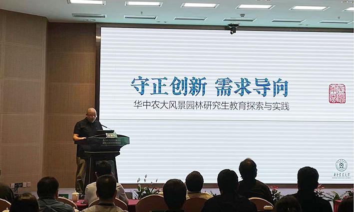 研讨会上,结合党的二十大精神,深入领会习近平总书记关于研究生教育的重要论述和精神,张斌教授以“守正创新、需求导向——华中农大风景园林研究生教育探索与实践”为主题,围绕“如何抓住风景园林转为专业学位教育和首次设置风景园林专业学位博士的关键发展机遇”主题,在回顾kaiyun开云官方网站风景园林办学“历史积淀、凝聚共识“的基础上,针对风景园林专业学位研究生培养中的困难和问题,以“科产融教、服务需求“为目标高质量建设风景园林博士专业学位研究生培养体系,同时结合kaiyun开云官网风景园林学博士学位点和风景园林专业硕士学位点建设情况,对风景园林博士学位点的建设提出了”实践筑基、情境育人“的新思路。