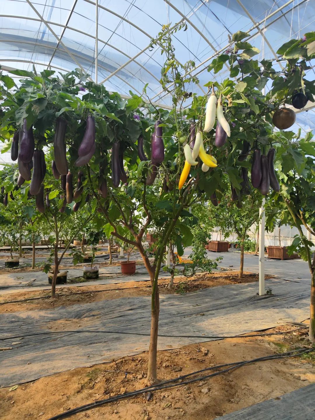 传统茄子是一年生的作物。用托鲁巴姆嫁接的接穗也是一年生,每年都要重新嫁接。我们的多宝茄树,两三年内无需重新嫁接,大大节约劳动成本。”叶志彪说。每年春天,多宝茄树嫁接的成功率都在99%以上。“因为是两种茄子杂交培育的砧木,嫁接茄子的亲和性最强,所以,在推广展示时,树上以茄子为主。”