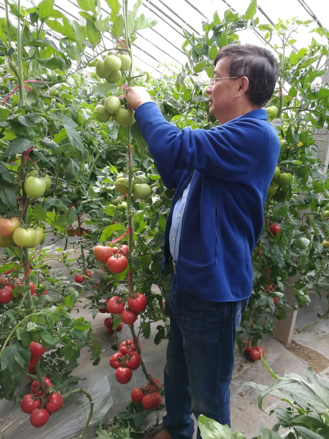 叶志彪与番茄合影。