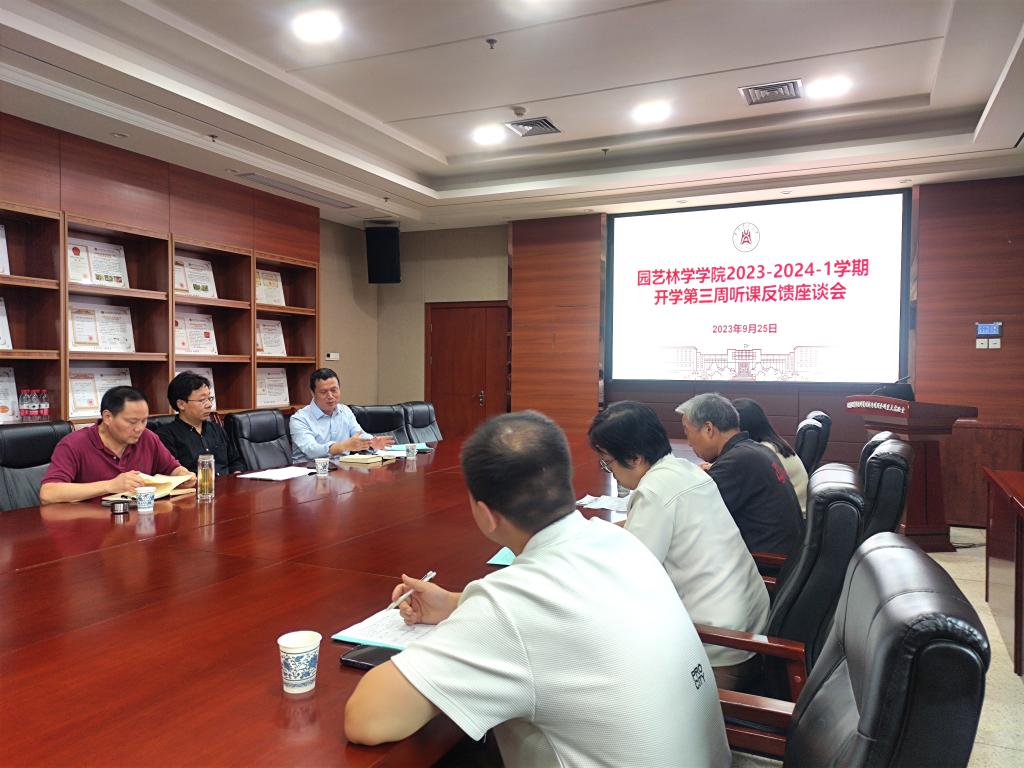 9月25日下午,kaiyun开云官方网站在南楼206会议室召开2023级本科生和研究生开学第一课听课反馈座谈会,听课和授课教师代表,教学督导,本科生和研究生教务办负责老师参会,副院长周继荣主持会议。