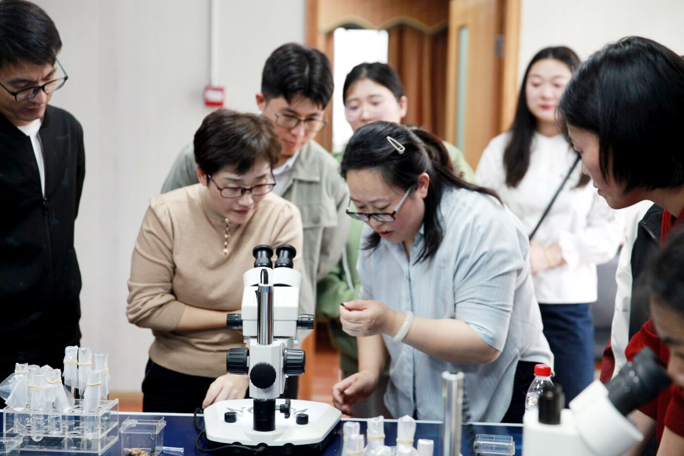 各科研工作者进行实操