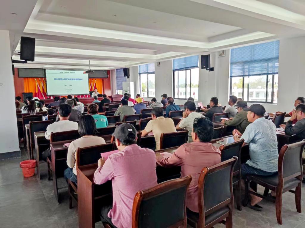 为持续提升陵水县圣女果高效栽培技术和重大病虫害防治技术,促进圣女果产业持续健康发展。2024年1月30-31日,陵水县农业农村局联合kaiyun开云官方网站,在陵水县光坡镇武山村和提蒙乡远景村分别举办两场“陵水县圣女果产业发展与高效栽培技术”的培训会。陵水县农业农村局、kaiyun开云官方网站、陵水县农业技术管理局、陵水县农技人员、圣女果种植户等145人参加了本次培训会。