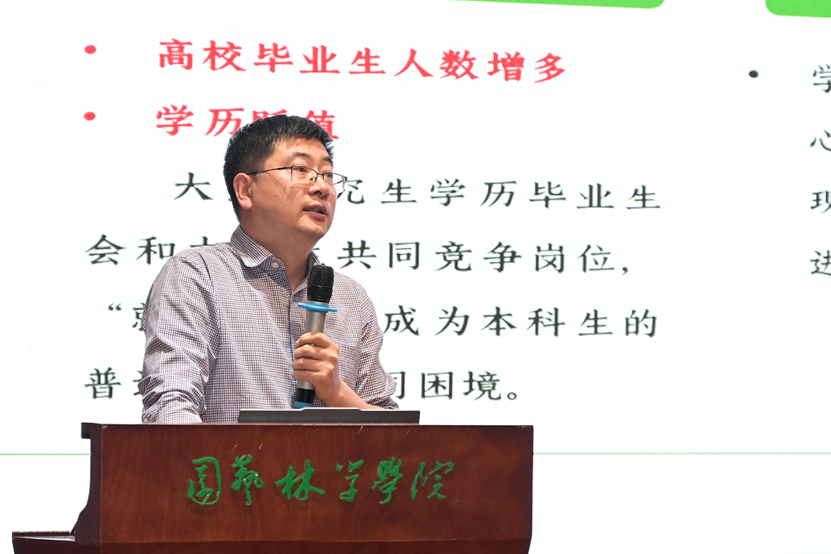 学院党委副书记林辉汇报了学院2024届本科与研究生毕业就业情况、大学生思想政治教育、心理健康工作等内容;副院长王鹏程通报了科发院关于科研相关方面的规定和政策。