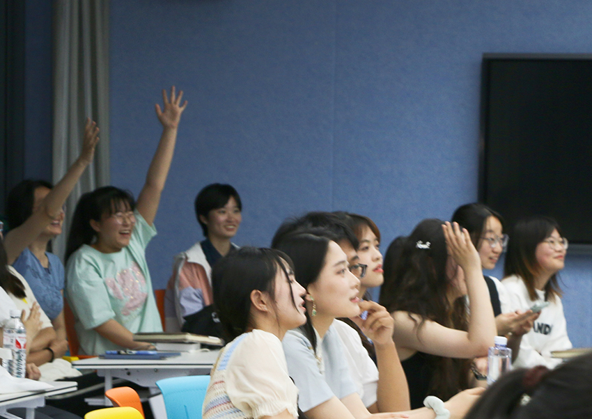 演讲结束后,张佳琪老师给大家出了20道与演讲有关的题目,同学们和老师们都积极参与,笑语连连,现场气氛十分活跃。