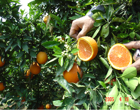 红肉脐橙留树晚采技术(2005年4月19日拍摄)