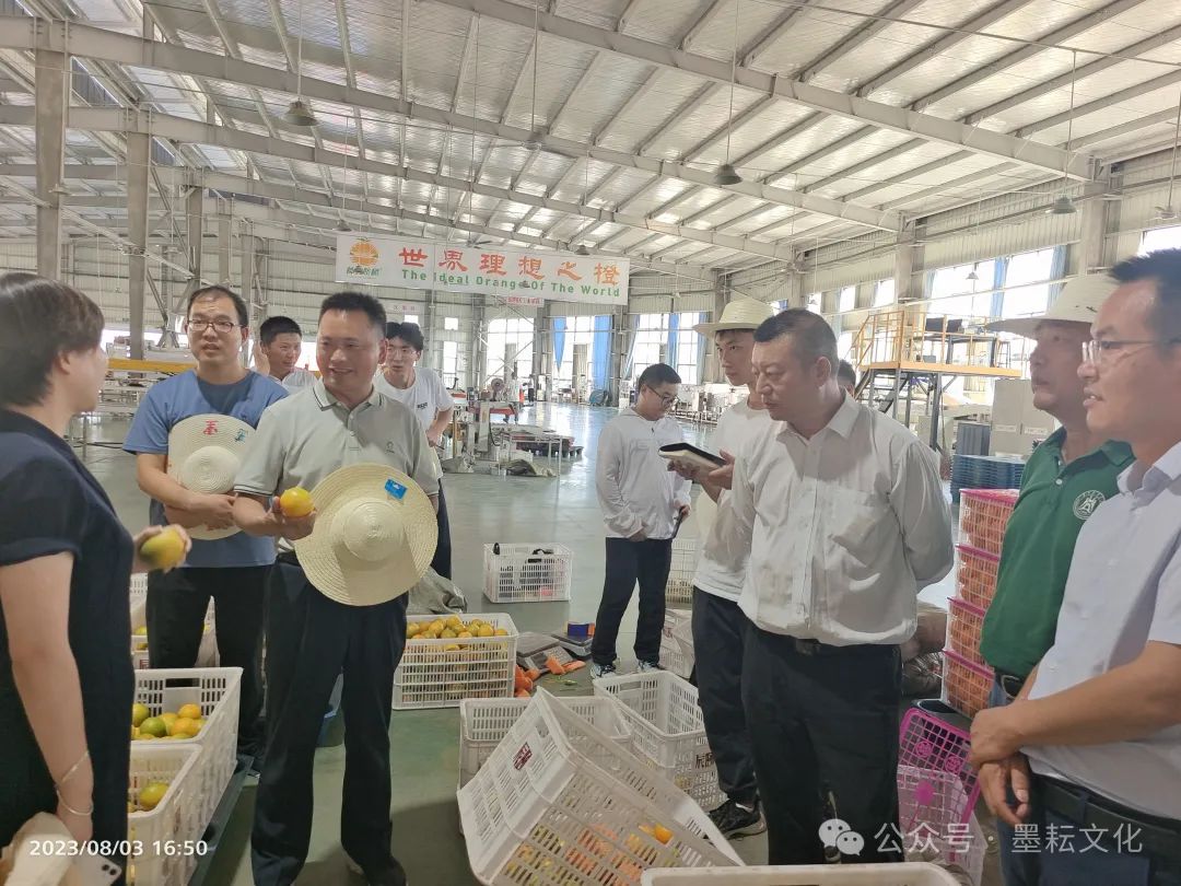 2023年8月3日,程运江教授(左三)在秭归县调研指导柑橘采后生产