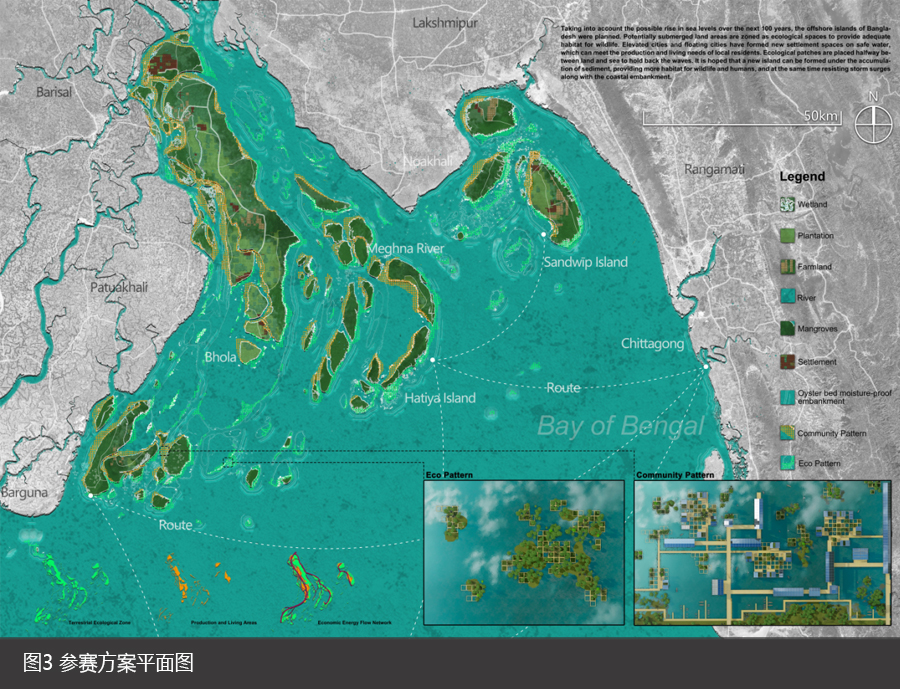 孟加拉国因水而生因水而荣。恒河、布拉马普特拉河和湄公河不仅是孟加拉国重要的水资源,也深刻影响了该国的自然和文化环境。团队重视当地居民的参与,综合考虑生物文化多样性的保护,强调河流、居民与土地之间的互动关系,在自然与人类共同繁荣的过程中,构建了2120年孟加拉国的愿景。