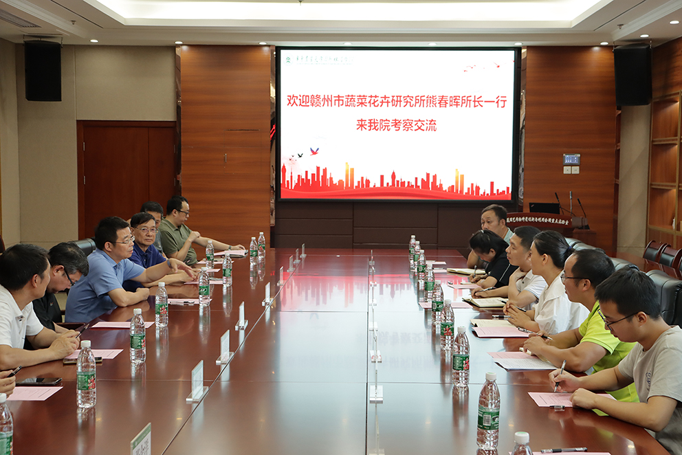 8月26日,赣州市蔬菜花卉研究所熊春晖所长一行来kaiyun开云官网考察交流。学院党委书记龙健飞接待了熊春晖所长一行,并举行了座谈会。蔬菜系叶志彪教授、欧阳波教授、卢永恩副教授、张俊红教授、王涛涛教授、张余洋教授、王昕研究员、叶杰副教授和湖北省农业科学院经济作物研究所高升华副研究员及部分研究生代表参加了座谈。