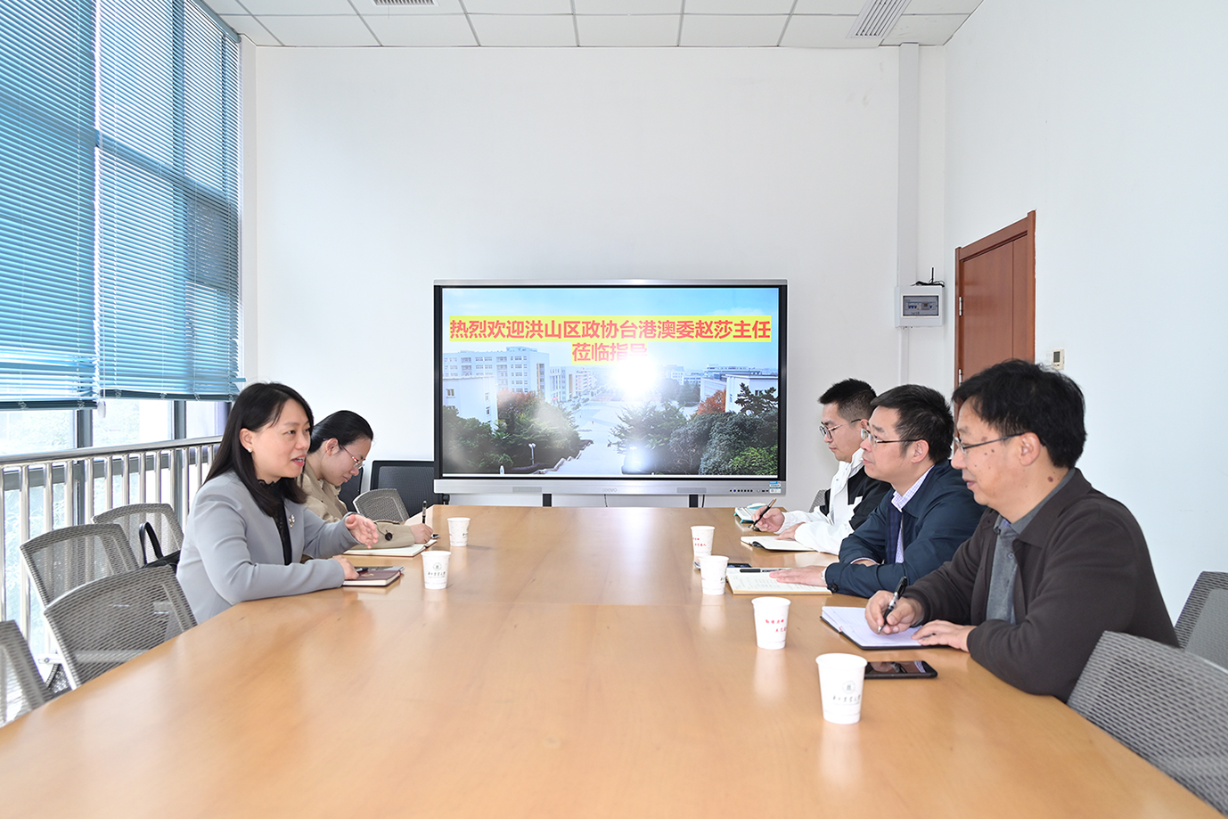 10月22日上午,洪山区政协台港澳委主任赵莎一行来院看望洪山区政协委员、校民盟委员会副主委孔秋生教授,学院热情接待了赵莎一行,并在园林南楼218会议室进行座谈交流。学院党委书记龙健飞、办公室工作人员参加。