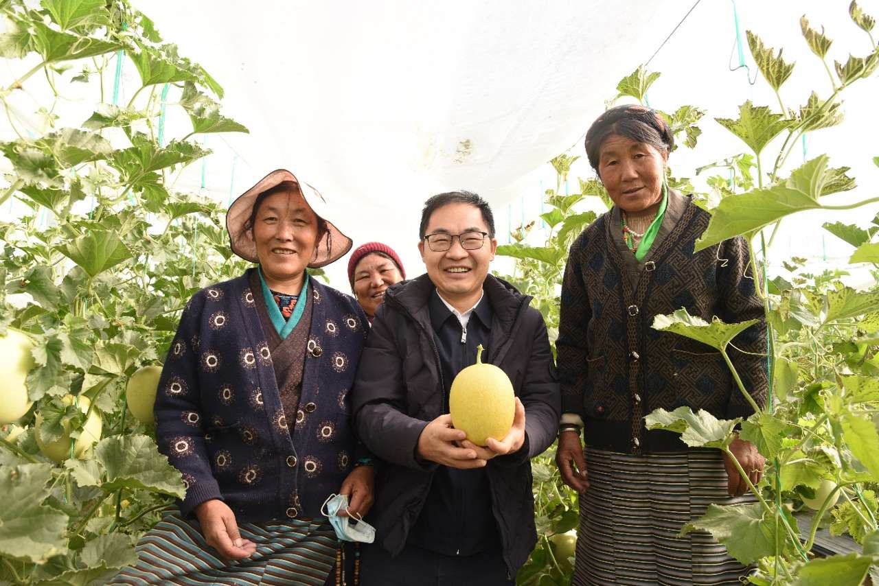 大棚内,格桑米厝和村民们一起吃着瓜,聊着今年的收成,场面十分和谐融洽。据了解,西藏跃林创建科技有限公司在该村流转土地200亩,发展设施农业的同时,也为当地藏族同胞解决了部分就业困难。