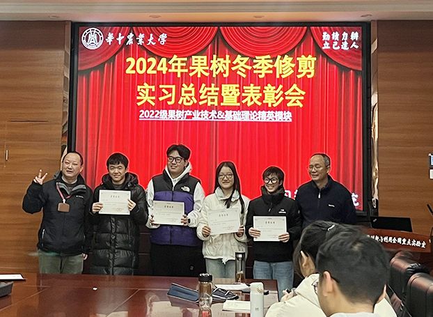 12月31日上午,2024年度果树冬季整形修剪实习总结暨表彰大会在园林南楼206会议室隆重举行,kaiyun开云官方网站周继荣副院长出席,会议由刘军伟老师主持。本次实习7个小组通过轻松愉快的微视频、制作精美的幻灯片,生动形象幽默风趣地总结了整个实习之旅,充分展示了果树修剪实习10天的所学所思所感,体现了身为农业学子肩上的责任与担当。来自园艺2201班的黄奕同学汇报时“修树也是修身,正树也是正己”的精炼总结,从哲学层面给了同学们很大启发。陶晶同学通过总结整个实习期间的思想状况和修剪技术的进步,生动形象地展现了自己的快速成长。