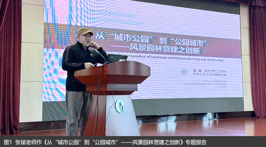 张斌老师以《从“城市公园”到“公园城市”——风景园林营建之创新》为题,系统梳理了我国公园与城市发展的历史脉络。他提出,传统“城市公园”模式已逐步转向“公园城市”理念,其核心逻辑在于以生态为基底、以人民为中心,通过全域公园化重构城市空间格局,实现“城园融合”的可持续发展。结合自身主持的项目经验,阐释了“公园城市”的实践路径。