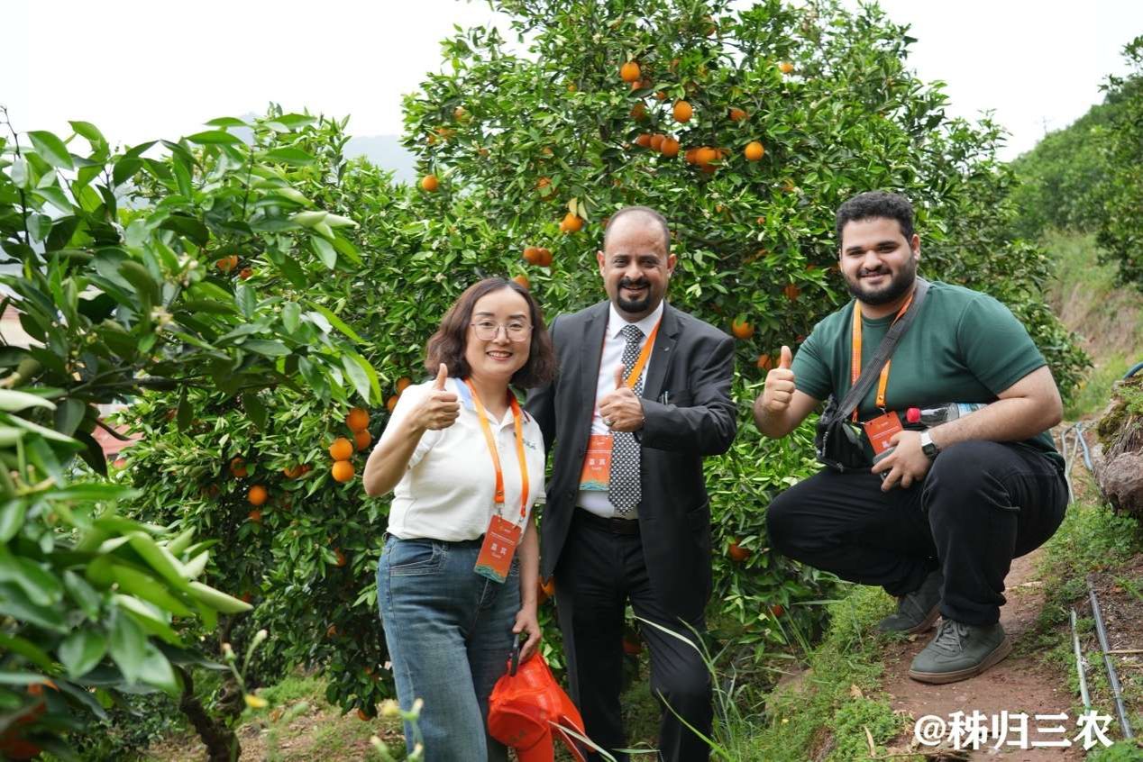 国外客商在秭归县水田坝乡果园参观 秭归三农供图