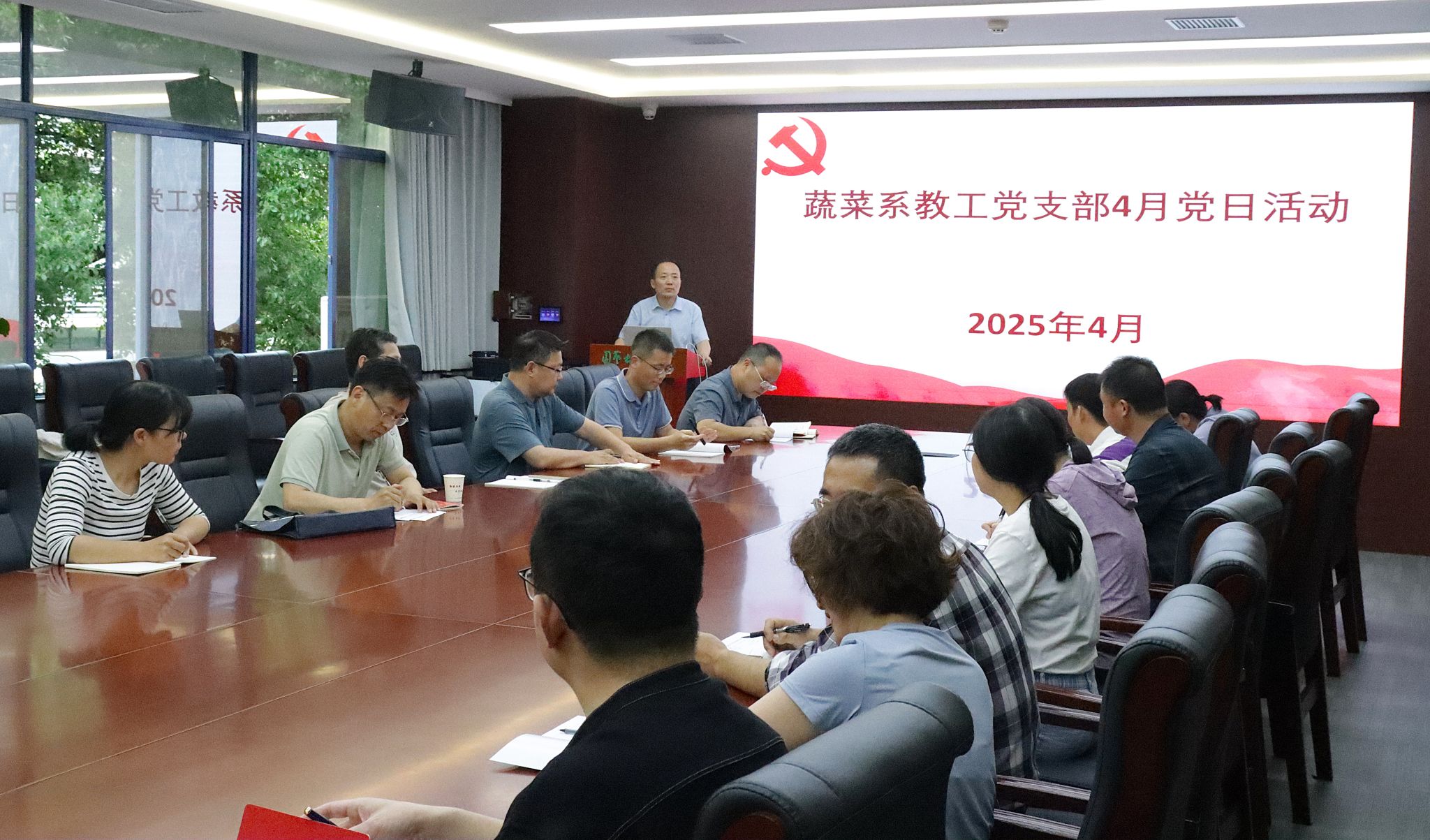 4月28日下午,蔬菜系教工党支部在园林北楼219会议室开展了4月份主题党日活动,集中学习了习近平在贵州、云南考察的重要讲话精神和中央八项规定精神。活动由支部副书记聂碧华同志主持。学院副院长周继荣同志列席会议。
