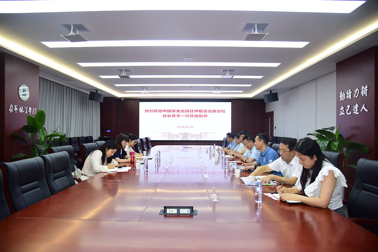 6月15日下午,中国农业出版社种植业出版分社社长黄宇一行来院调研,学院院长程运江、副院长周继荣等热情接待了黄宇一行并举行座谈交流,学院各系主任及教师代表一同参加,座谈会由周继荣主持。
