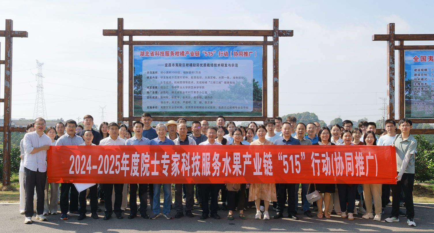 会上,夷陵区政府副区长覃亮和宜昌市农业农村局副局长陈琼分别致辞。水果产业链“515”行动各团队负责人分别就柑橘、梨、桃、葡萄和果桑等水果的技术成果示范应用进行了专题汇报,分享了项目实施成效。水果产业链“515”行动技术牵头人程运江教授在总结中指出,“515”行动启动实施以来,在邓秀新院士的亲自领衔下,各专家团队紧密协作,针对水果产业链高质量发展需求,深入产区推广先进实用技术,在促进产业提质增效和企业转型升级方面取得了显著成果。项目推广负责人赵昆松研究员强调,各团队要严格对照项目任务书要求,聚焦重点领域精准发力,充分发挥院士专家团队的引领作用,着力推进新技术集成与推广机制创新,重点打造技术成果应用示范场景,为果业可持续发展提供有力支撑。