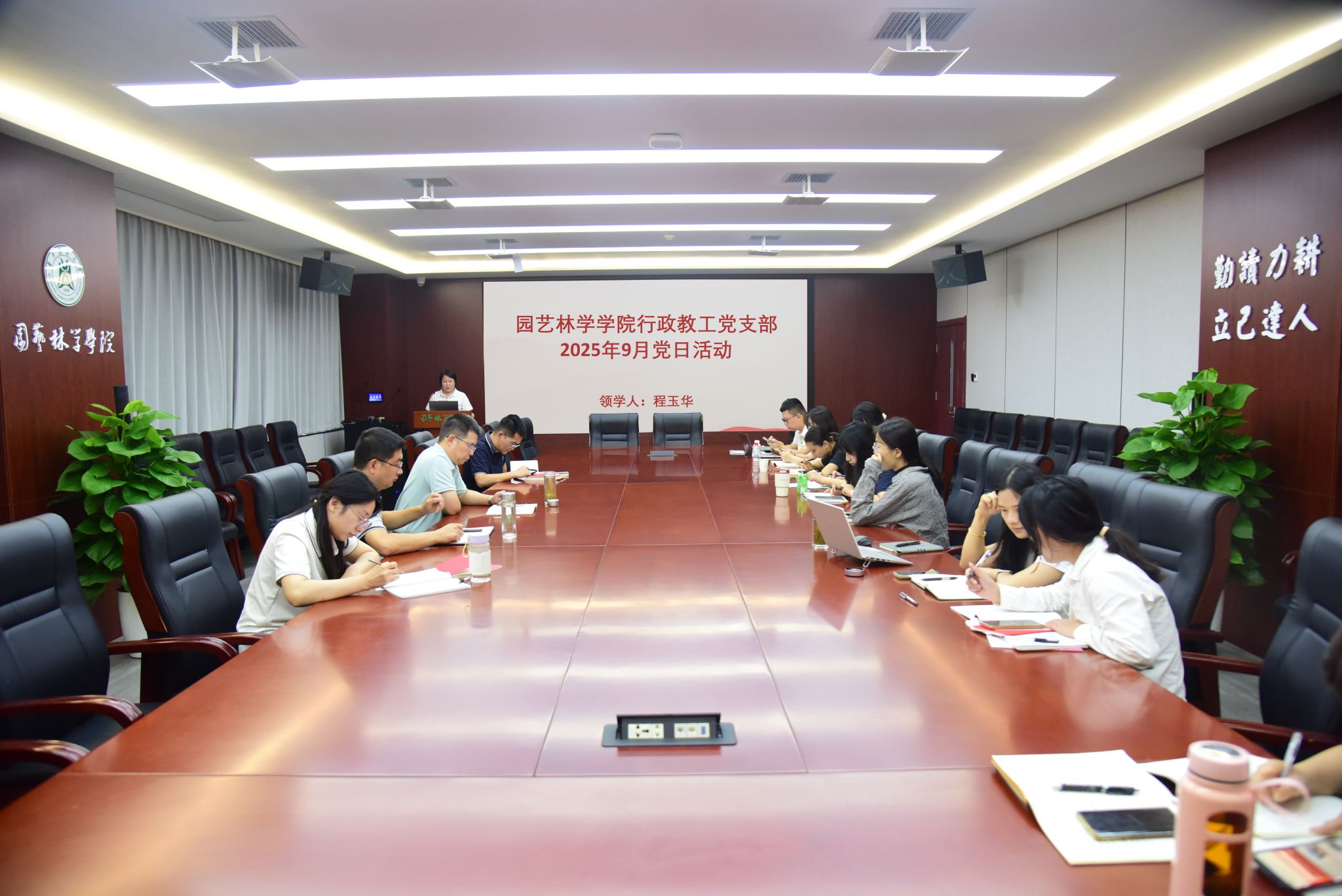 9月15日上午,学院行政教工党支部在园林北楼219会议室组织召开9月主题党日活动集中学习,深入学习贯彻习近平总书记近期重要讲话精神及学校本科教育教学审核评估相关工作要求。支部成员程玉华领学,支部全体党员参加会议。