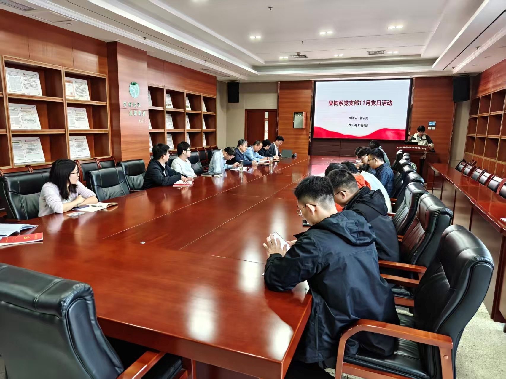 11月4日下午,果树系教工党支部在园林南楼 206 会议室开展主题党日活动。本次会议由党支部书记柴利军主持,支部党员及学系党外教师共同参与,围绕四项核心内容开展学习研讨:一是深入学习领会党的二十届四中全会精神;二是学习《习近平谈治国理政》第五卷内容;三是专题学习研讨习近平总书记给中国农业大学的回信精神;四是围绕学校第二次党员集中大课内容交流心得,切实推动理论学习入脑入心。
